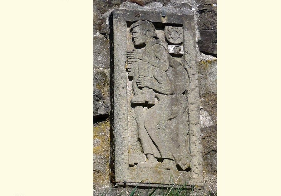 Das Steinrelief auf der Mauer des Tores aus dem Jahre 1963 zeigt einen Mann auf dem Rücken einer Frau. Es erinnert an die „Sage von der Weibertreue“: