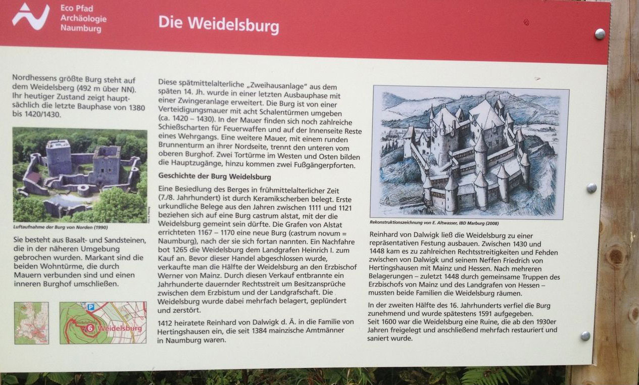 Die Ruine der Weidelsburg ist schon seit Jahrzehnten Anschauungsobjekt für Schulen und interessierte Bürger. Mit dem Besuch im Regionalmuseum Wolfhagen kann eine solche Wanderung zur Burg vorbereitet werden. Speziell für Schulen wurden Lernmaterial erstellt mit vielen Informationen über die Lebensweise der Burgbewohner in der damaligen Zeit.